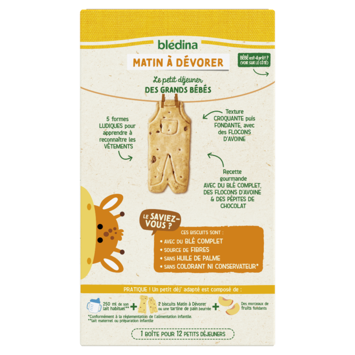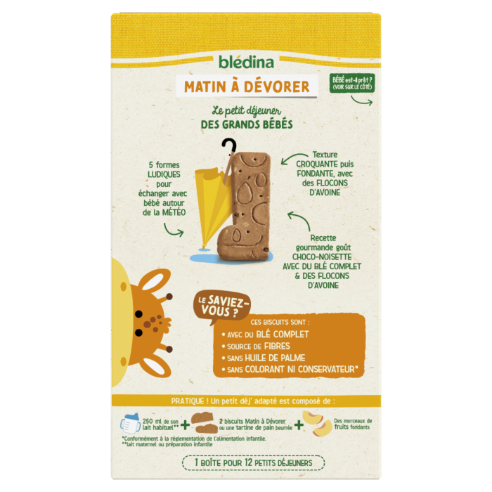 Découvrez «matins à dévorer » de Blédina, spécialement développée pour le petit déjeuner des grands bébés. Une recette gourmande dès 15 mois, avec des céréales complètes, à manger avec les doigts ou à tremper dans son lait habituel.