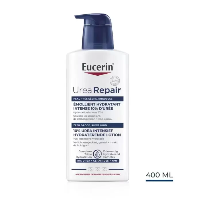Eucerin UreaRepair 10 % est un soin réparateur hautement efficace pour les peaux très sèches et rugueuses. Grâce à sa formule enrichie en urée et facteurs hydratants naturels, il restaure la douceur, supprime la rugosité et soulage les sensations de tiraillements avec une hydratation durable. Adapté aux zones nécessitant un soin intense (pieds, coudes, talons), ce soin sans parfum est suffisamment doux pour les peaux sensibles ou matures, apportant confort et régénération visible au quotidien.