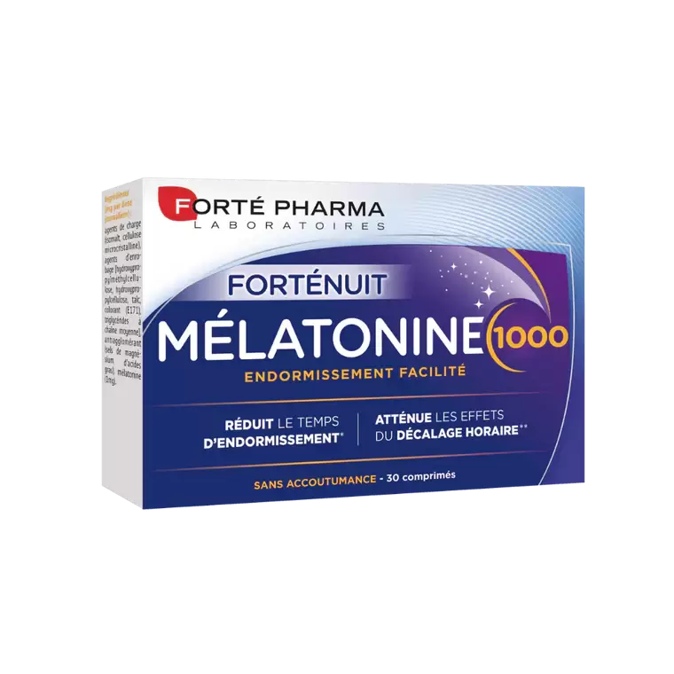 Forténuit Mélatonine 1000 est un complément conçu pour offrir une aide naturelle aux difficultés d’endormissement. Un comprimé le soir à la dose de 1 mg aide à réguler le rythme veille-sommeil, favoriser un endormissement plus rapide et améliorer la qualité du repos. Commode, sans accoutumance, il convient particulièrement en cas de stress, de bouleversements d’habitude ou de voyages, pour retrouver des nuits paisibles et réparatrices.