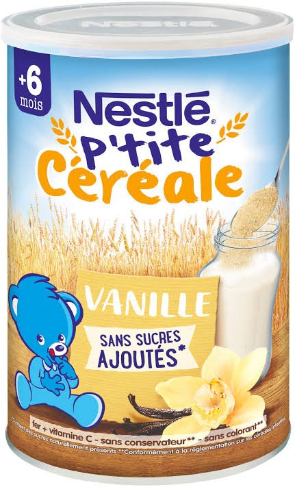 Nestlé P’tite Céréale : la céréale lactée pensée pour accompagner bébé de 6 à 36mois, au petit-déjeuner, goûter ou dîner. Enrichie en céréales complètes, vitamines (A, C, D, E, B1, B3, B6, B9), et fer, elle se mélange facilement au lait pour apporter façons savoureuse, nutritive et originale au lait habituel.
