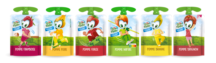 De nombreuses variantes fruitées disponibles : pomme seule ou panachée avec poire, fraise, banane, mirabelle… plus de 15 combinaisons à découvrir.