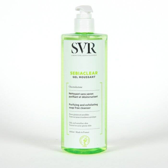 SVR Sebiaclear Gel Moussant est un gel moussant qui nettoie et élimine l’excès de sébum sans dessécher la peau, il peut être appliqué sur le visage et le corps, c’est un nettoyant doux qui désincruste et purifie la peau grâce à sa texture mousseuse et facile à rincer, laissant un fini frais et mat. Hypoallergénique et non comédogène